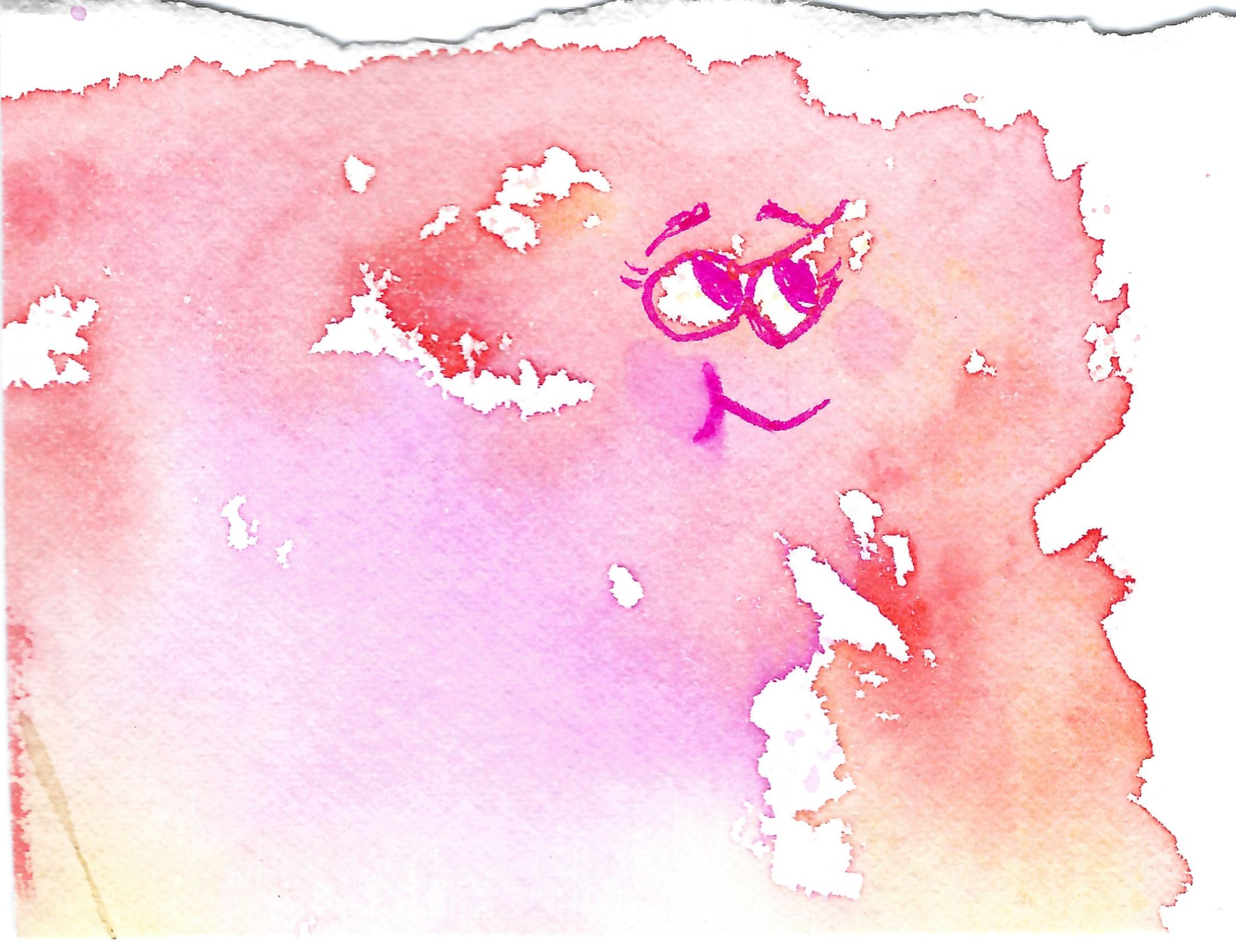 I’m not sure what this will lead to, but there are all kinds of creatures floating around and they visit me sometimes. What began as a watercolor wash on paper became this sweet heart. Original one-of-a-kind watercolor study in pink, orange, and yellow. Cotton candy like fluffy clouds with a cute face.